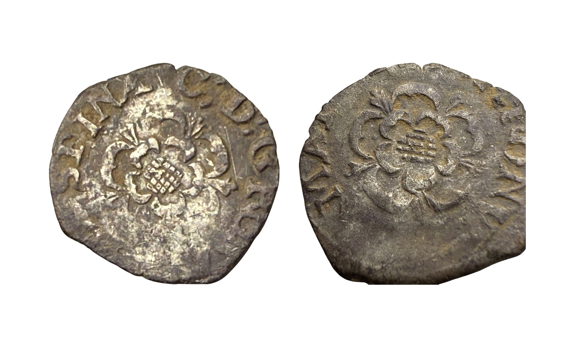 David Pratley described this small (about 13mm in diameter) hammered silver coin as a Charles I halfpenny with legends. It is a coin of Charles I but it’s a penny rather than a halfpenny.