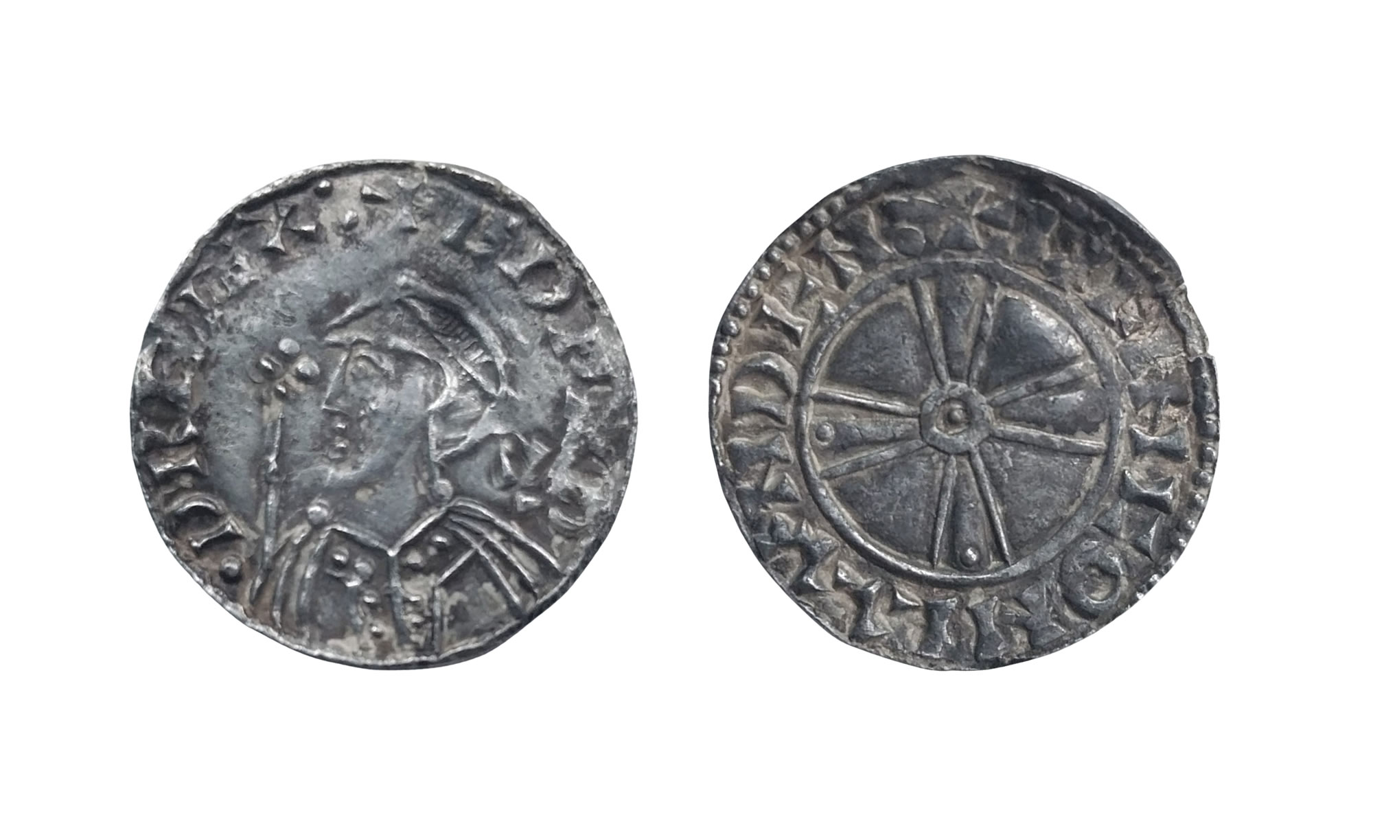 Of the various types struck for Edward the Confessor, the expanding cross type is not particularly rare. However, this example is a rather unusual variety. In the centre of the reverse there is usually a full circle, from which the arms of the expending cross extend; in the throat of the cross there are four arcs making up a circle surrounding the centre circle. On this coin there is just the centre circle. Additionally, the arms of the expanding cross are usually empty but on this coin each arm has a pellet near the inner circle. Therefore, this is a very unusual and rare variety.