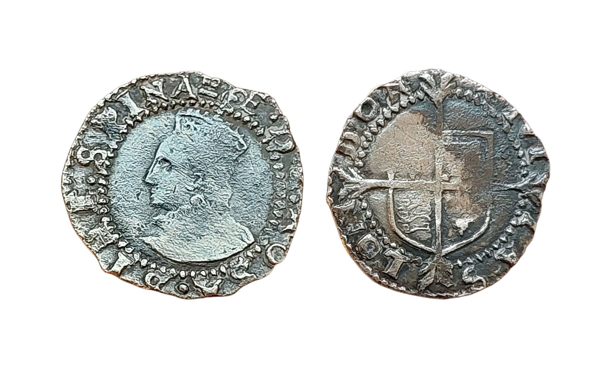 Anthony Hopkinson told me that he unearthed this coin last Sunday. He knows it is a penny of Elizabeth I but wanted me to identify the mint mark and say to which issue it belonged.